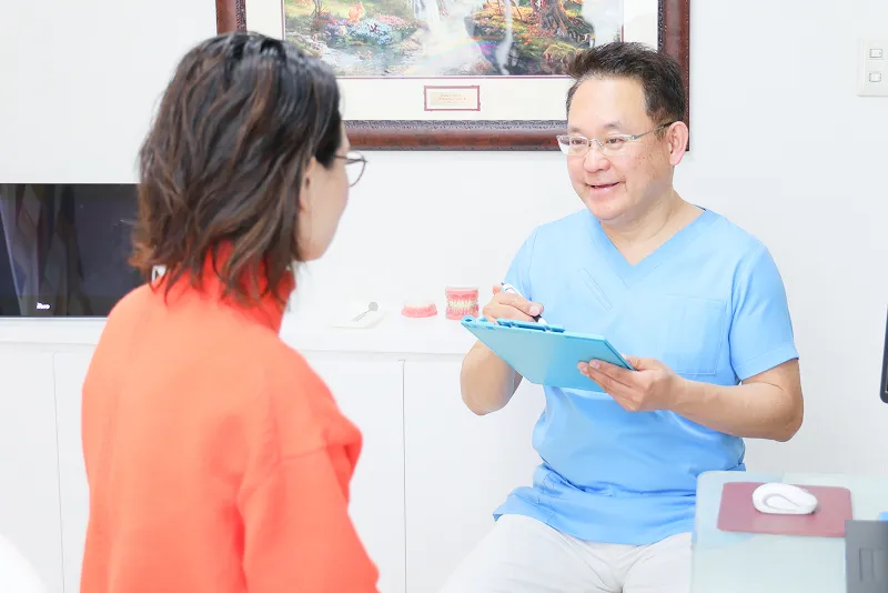 まずは、患者様のお口に関するお悩みや、全身の健康状態、治療に対するご希望などを丁寧にお伺いします。